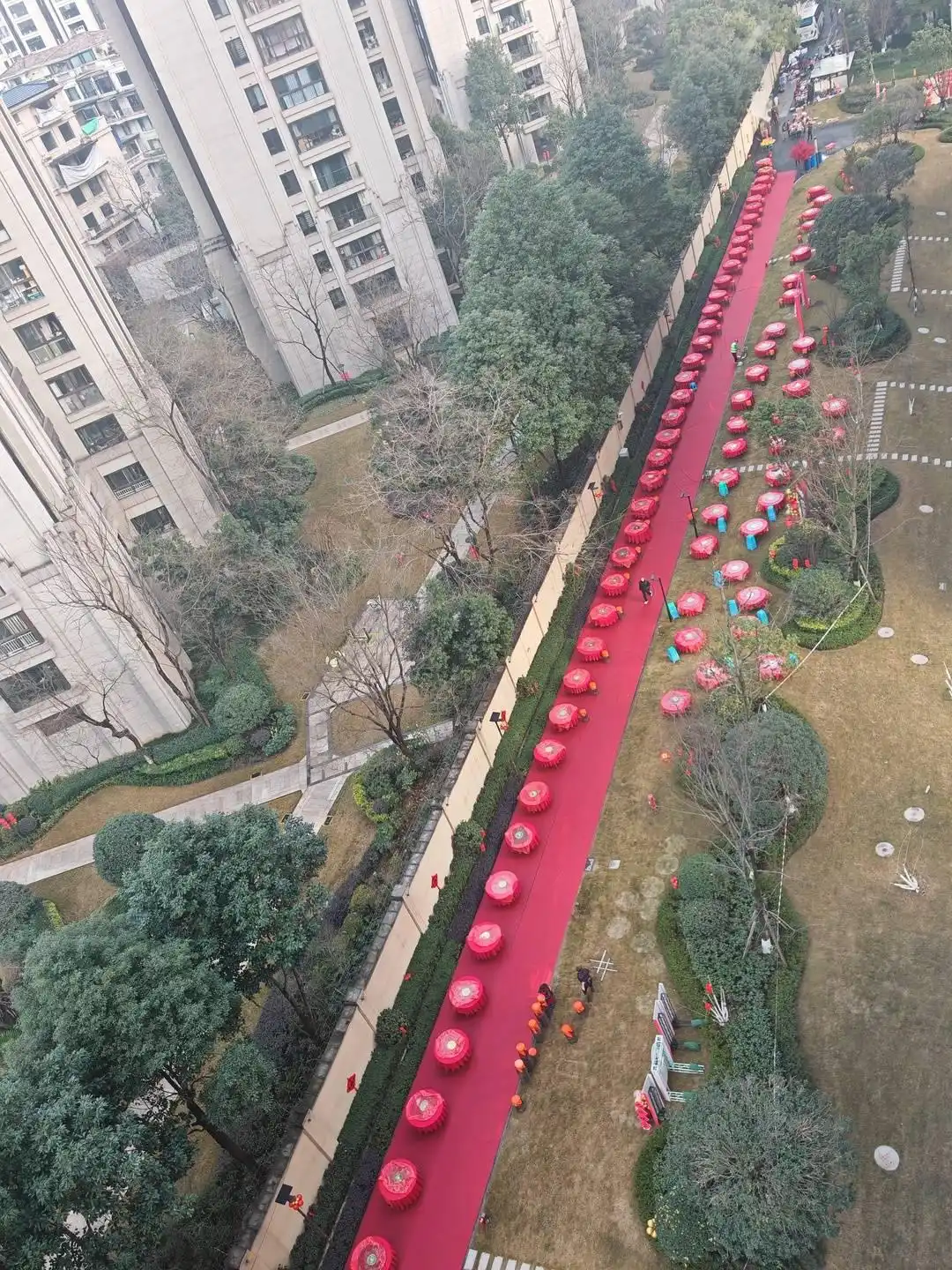 居民杨女士说:“一般印象中,乡下的老家才会有坝坝宴,没想到在成都这么现代化的都市中也能参加,非常新奇与开心。”杨女士介绍,邻居们都非常兴奋,自发用相机、无人机等设备来拍摄视频、照片等,记录下这美好的时刻,“也非常感谢物业,组织这么大的活动非常用心。”